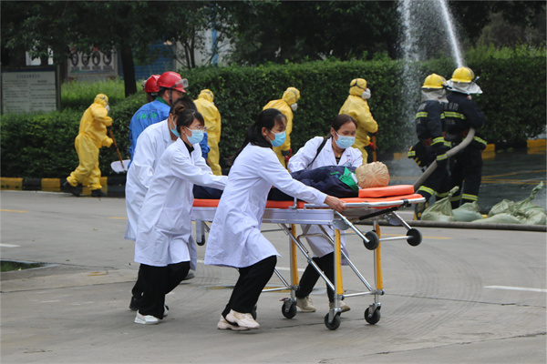 本次演練模擬工人不小心將堿性廢液倒入有機(jī)廢酸噸桶致使酸堿混合,噸桶內(nèi)發(fā)生化學(xué)反應(yīng),短時(shí)間內(nèi)大量放熱,達(dá)到有機(jī)廢酸燃點(diǎn)起火致突發(fā)環(huán)境事件企業(yè)、政府先后啟動(dòng)應(yīng)急響應(yīng)全過(guò)程。