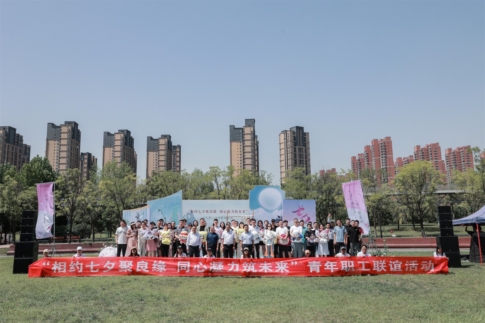 在“七夕”來臨之際,8月22日,陜西環保集團聯合中建八局西北公司、西部機場集團、華陸工程科技公司在曲江青年公園舉行“相約七夕聚良緣 同心凝力筑未來”2023年青年職工聯誼活動,來自各單位的200余名單身青年共赴浪漫之旅。