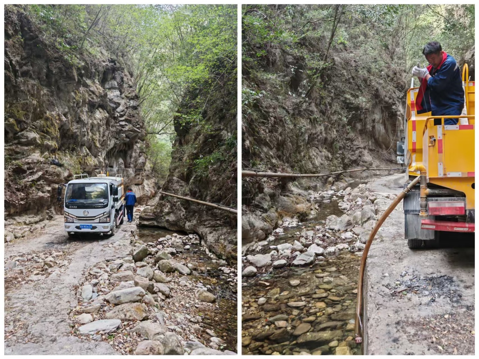 入夏村民生活用水供應告急,公司在協調好探礦和生產任務的同時,第一時間響應屬地政府需求,并安排公司安全環保部落實,迅速啟動應急供水方案。面對人員短缺的困境,安全環保部職工呂博主動請纓,獨自承擔起拉水送水的任務。此次供水行動取水點距村莊運距3公里,沿途道路狹窄崎嶇,部分路段僅容單車通行,車輛需頻繁倒車調整。更棘手的是,灑水車原有水壓系統無法滿足抽水需求。面對難題,呂博立即向部門負責人匯報,在公司協調下,迅速從礦山管理部調配一臺汽油泵投入使用,有效解決了水源抽取問題。